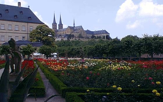 Oben ein Bild vom wunderschönen Rosengarten auf St. Michael, das im Jahr 1015 von Heinrich dem zweiten gegründet wurde.