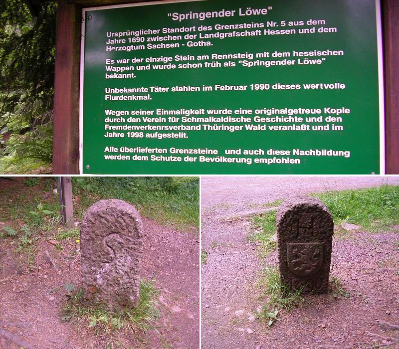 ![]() Auf dem Rennsteig der Grenzstein zwischen Sachsen-Gotha (links) und Hessen (rechts) | |